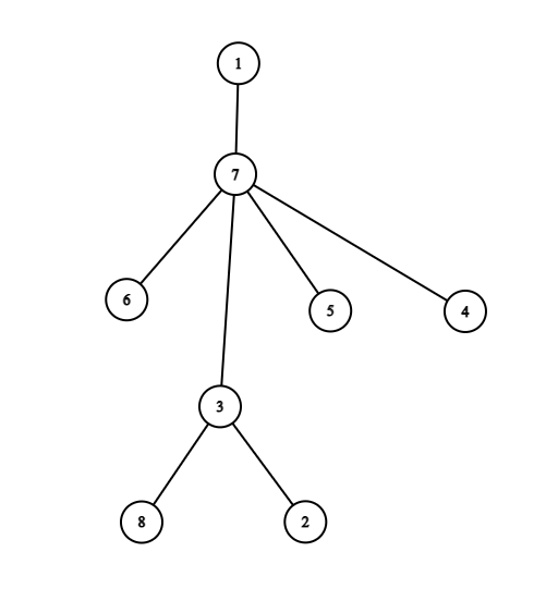 Дано дерево, состоящее из \(n\) вершин. Напомним, что дерево — это неориентированный ацикличный граф. Корнем данного дерева является вершина \(1\).