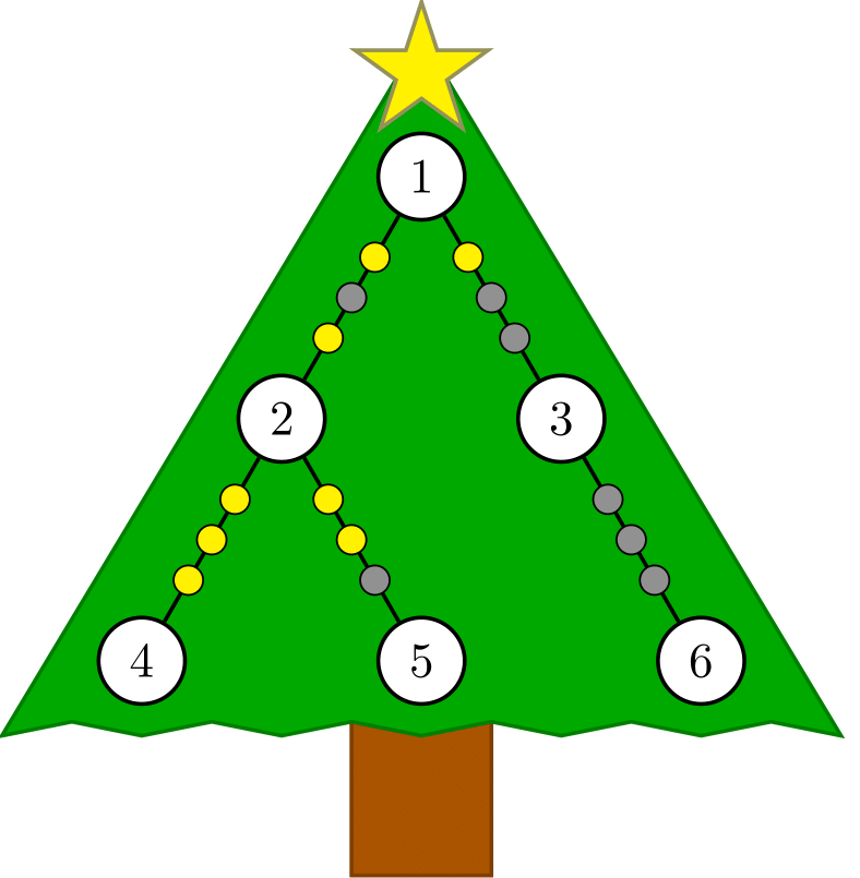 Это была ночь перед рождеством, и пришло время Санте украсить свое Рождественское дерево. Это дерево состоит из \(n\) вершин, соединенных \(n-1\) ребром. На каждом ребре дерева расположена гирлянда, которую можно описать некоторым числом в двоичном представлении.