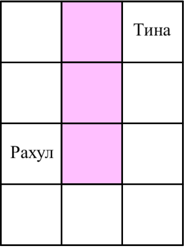 - После того, как Рахул выберет свое место, Тина выбирает место для себя. Она может выбрать любое место, покрашенное или нет, за исключением того места, которое выбрал Рахул.