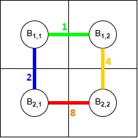 - Переместиться вверх в \(B_{1,1}\).