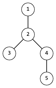 Например для дерева ниже множества \(\{3, 2, 5\}\), \(\{1, 5, 4\}\), \(\{1, 4\}\) проходимы, а \(\{1, 3, 5\}\), \(\{1, 2, 3, 4, 5\}\) — нет.