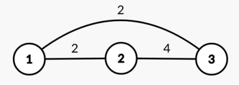 \(\operatorname{d}(1, 2) = \operatorname{d}(1, 3) = 2\) и \(\operatorname{d}(2, 3) = 4\), поэтому диаметр графа равен \(\max(2,2,4) = 4\).