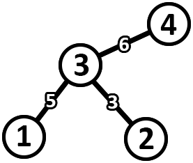 - The weight of each edge in the graph is an integer between \(1\) and \(2N-2\) inclusive. Each edge has distinct weights.