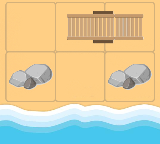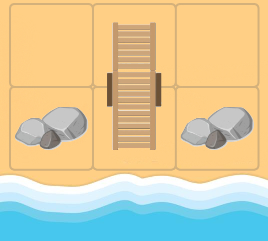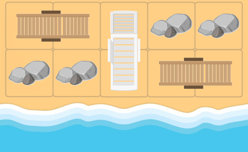 В любой момент времени каждый лежак занимает две соседние клетки, не содержащие ничего другого. Вы можете двигать одновременно максимум один лежак.