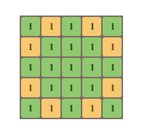 На рисунке изображена матрица 5 × 5. Зеленым цветом отмечены хорошие элементы. Помогите Умному Бобру подсчитать сумму хороших элементов заданной матрицы.