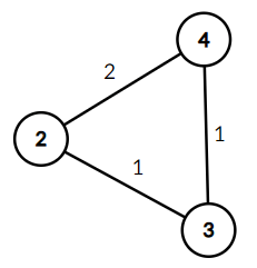 Графа \(G'\) для первого набора входных данных. На рисунке видно, что в графе \(2\) различных веса ребер.