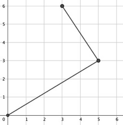 \((0,0) \to (5,3) \to (3,6)\)