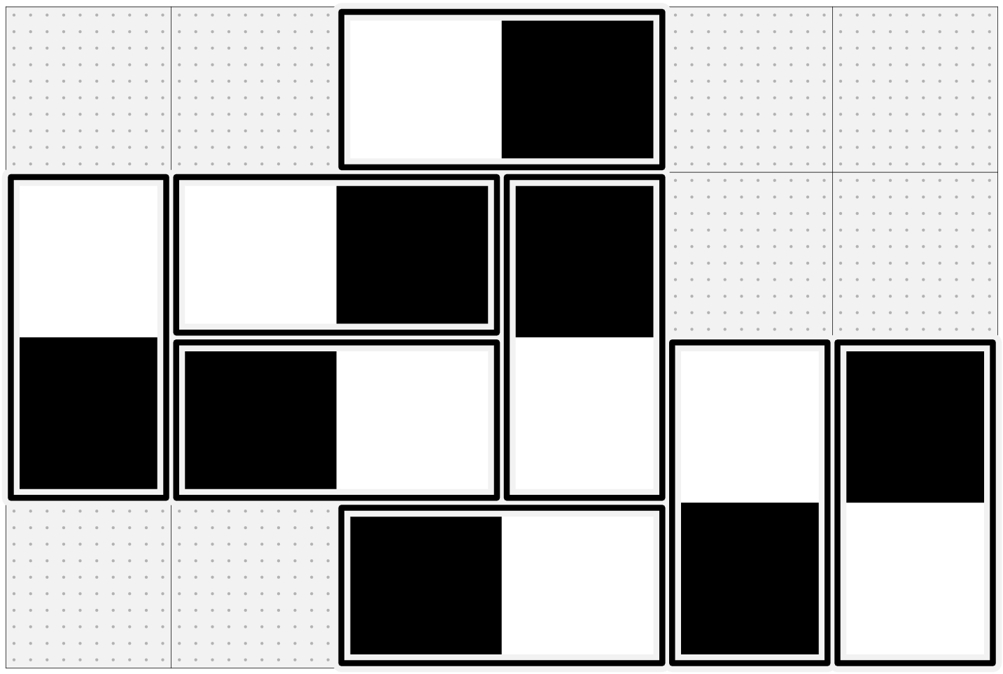 - для каждого столбца число чёрных клеток в этом столбце равно числу белых клеток в этом столбце.