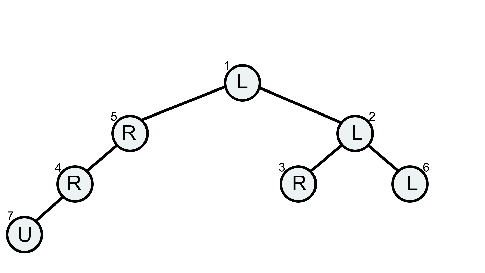 Кроме того, на каждой из вершин написана буква \(s_i\), которая является либо «U», либо «L», либо «R».