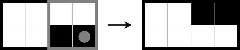For example, the following illustration shows how the grid changes after a player chooses a black cell \((5, 4)\) in their turn.