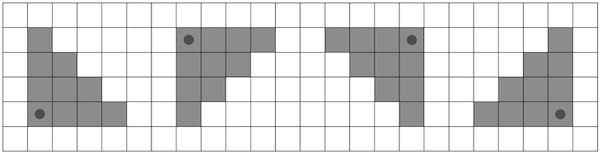 С собой у Шел оказался только счастливый дробовик, из которого можно выстрелить в одну из четырёх сторон: вправо-вниз, влево-вниз, влево-вверх или вправо-вверх. При выстреле дробовик поражает все мишени в выбранном направлении, Манхэттенское расстояние до которых не больше фиксированной для дробовика константы \(k\). Манхэттенское расстояние между двумя точками \((x_1, y_1)\) и \((x_2, y_2)\) равно \(|x_1 - x_2| + |y_1 - y_2|\).