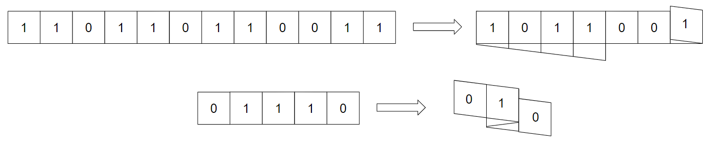 Например, вот допустимые складки для \(s = \mathtt{110110110011}\) и \(s = \mathtt{01110}\):