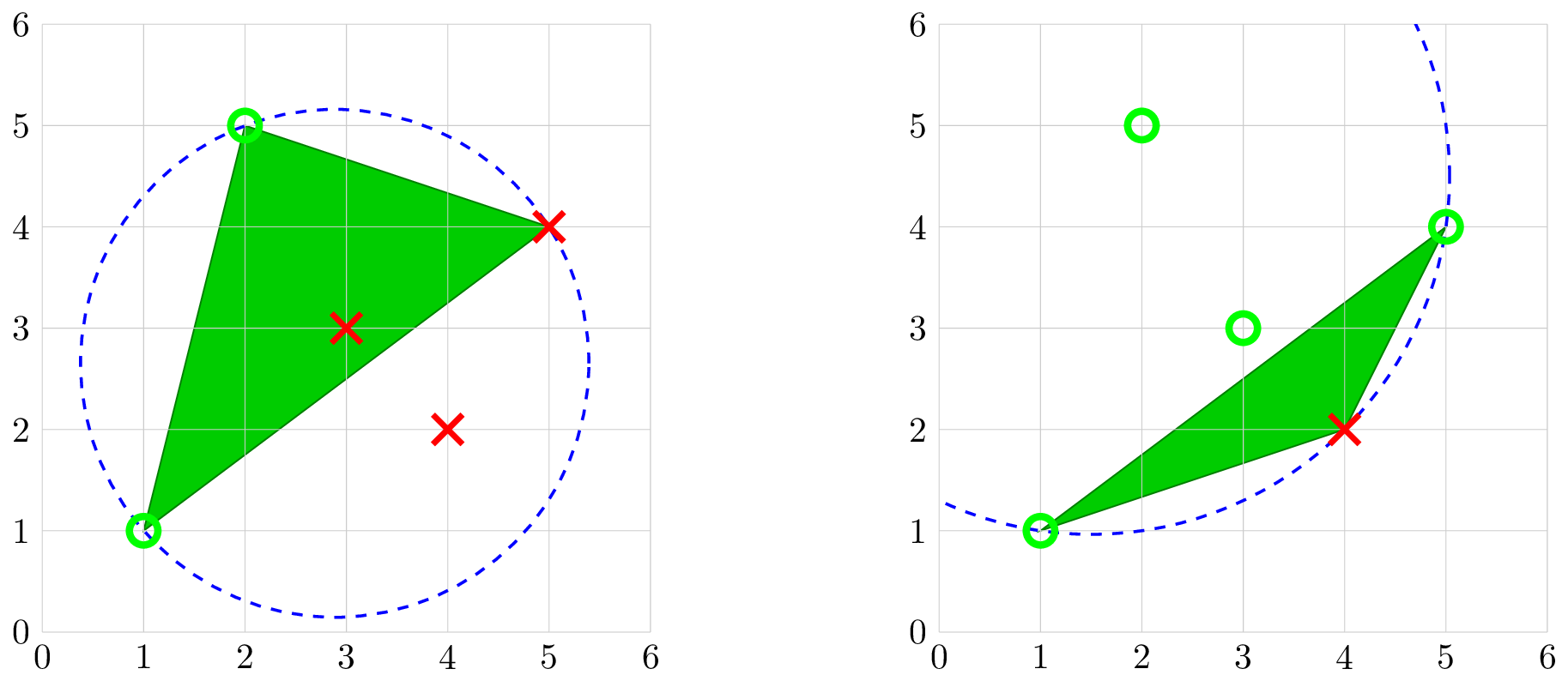- Использовать операцию с башней \(P =\) \(5\), башней \(Q =\) \(1\) и башней \(R =\) \(4\). Окружность, проходящая через эти три башни, содержит все башни внутри себя, в результате чего башня \(4\) оказывается захваченной.