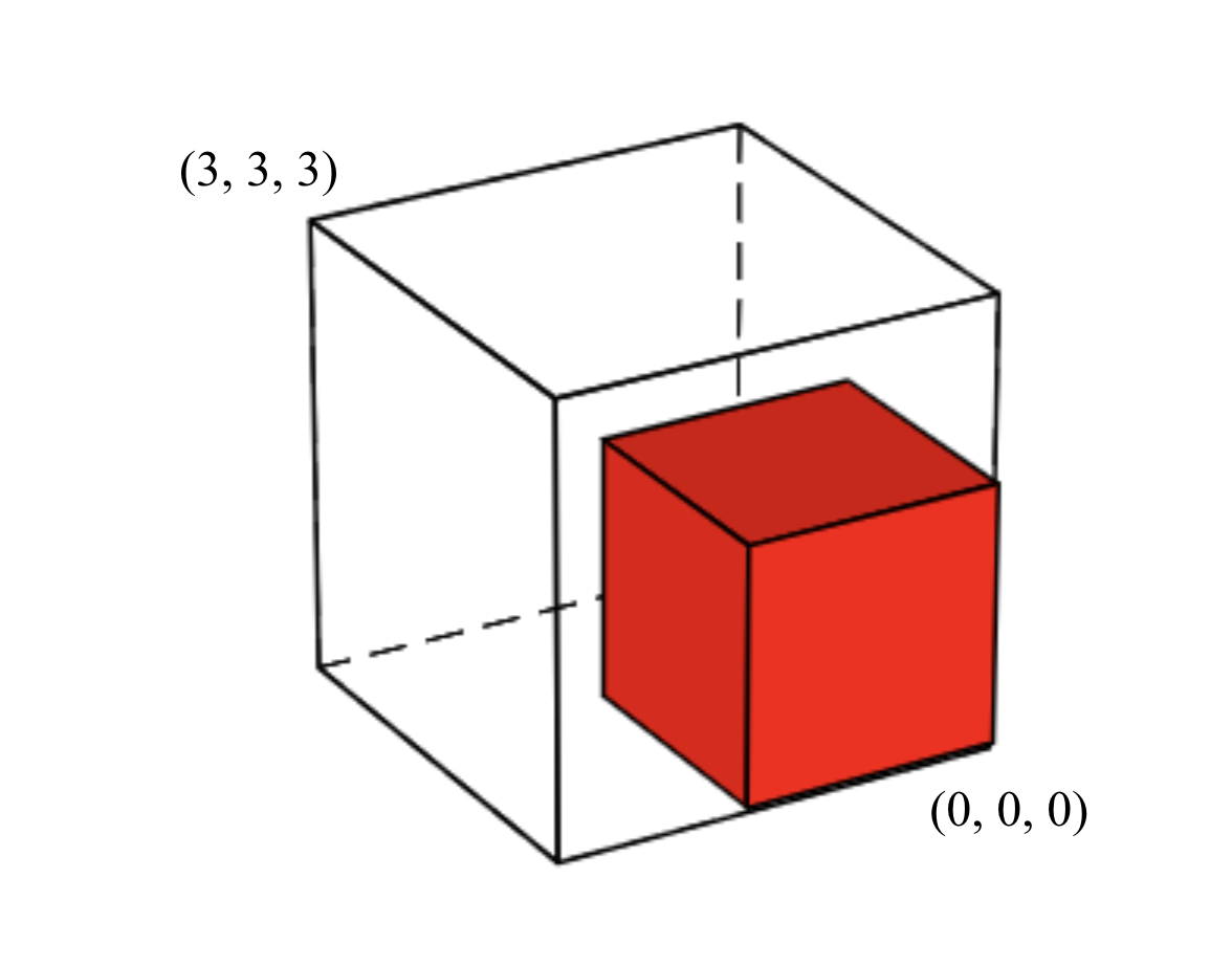 У Ntarsis есть ящик \(B\) с длиной сторон \(x\), \(y\) и \(z\). Он находится в трехмерной координатной плоскости, простираясь от \((0,0,0)\) до \((x,y,z)\).
