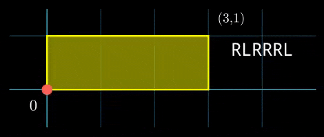 Пример процесса движения робота, \(s = \texttt{"ULULURD"}\) Сценарий \(s\) будет выполняться \(k\) раз подряд. Все изменения в строке \(s\) будут сохраняться даже при повторении. В процессе выполнения, сколько раз робот переместится в точку \((0, 0)\)? Обратите внимание, что начальная позиция не учитывается.