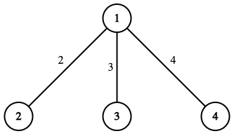 В первом наборе входных данных \(\operatorname{dist}(1, 2) = \operatorname{dist}(2, 1) = t_2 = w = 10^{12}\), поэтому \(\operatorname{dist}(1, 2) + \operatorname{dist}(2, 1) = 2 \cdot 10^{12}\)