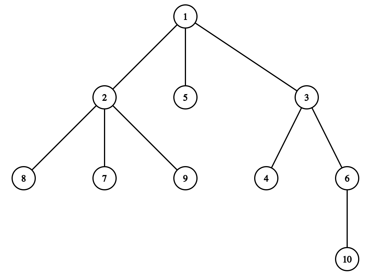 У Ирис сейчас есть дерево, состоящее только из вершины \(1\). Она хочет добавить ещё \(n - 1\) вершин, чтобы сформировать большее дерево. Она будет добавлять вершины по одной. Когда она добавляет вершину \(i\) (\(2 \leq i \leq n\)), она сообщит вам целое число \(p_i\) (\(1 \leq p_i < i\)) и добавит новое ребро, соединяющее вершины \(i\) и \(p_i\).