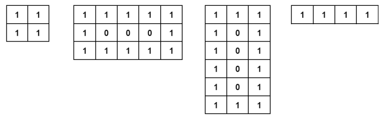 Красивая двоичная матрица — это матрица, по краям которой стоят единицы, а внутри нули.
