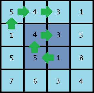 Поликарпу стало интересно, сколько всего раз встретится запись числа \(1543\) во всех слоях\(^{\text{∗}}\) ковра при его обходе по часовой стрелке.