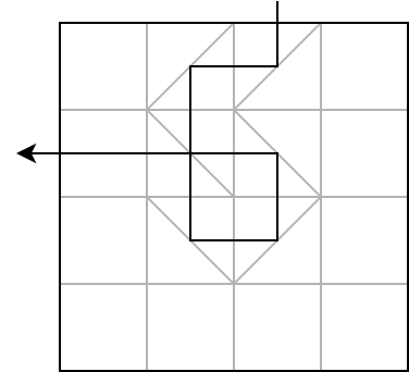 These mirrors follow the law of reflection, that is, the angle of reflection equals the angle of incidence. Formally, for type \(1\) mirror, if a beam of light comes from the north, south, west, or east of the cell, then it will be reflected to the west, east, north, and south of the cell, respectively. Similarly, for type \(2\) mirror, if a beam of light comes from the north, south, west, or east of the cell, then it will be reflected to the east, west, south, and north of the cell, respectively.