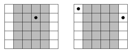 5 × 5. Поэтому, если в ней есть одна точка, то больше нигде точек быть не может. Если в одной из белых областей есть точка, то в другой тоже должна быть точка. Таким образом есть
