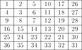 Так, после того, как будут поставлены первые 36 чисел, матрица a примет следующий вид: