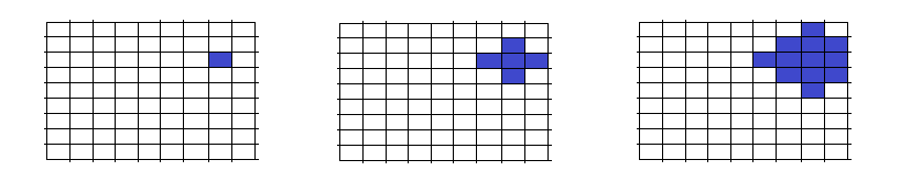 Будем считать, что строки таблицы пронумерованы сверху вниз от 1 до n, а столбцы — слева направо от 1 до n. Изначально включена ровно одна клетка с координатами (x, y) (x — номер строки, y — номер столбца), а все остальные клетки находятся в выключенном состоянии. Далее каждую секунду происходит включение выключенных клеток, у которых есть включенные соседние по стороне клетки.
