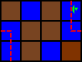 Красной Шапочке и Ивану Дураку поручили переработать план так, чтобы в любой момент времени существовал хотя бы один торговый маршрут. План Ивана и Панамки очень прост — каждый раз, когда ячейка должна быть превращена из моря в землю, они проверяют, не получится ли так, что после превращения не останется ни одного торгового маршрута. Если хотя бы один маршрут остается, они превращают море в землю на этой ячейке, и переходят к следующей ячейке. Если ни одного маршрута не остается, они не превращают эту ячейку в землю, и переходят к следующей ячейке.