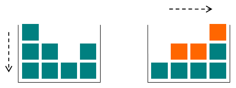 Первый тестовый пример изображен на рисунке. Верхний кубик первого столбика падает на верх последнего столбика; верхний кубик второго столбика падает на верх третьего столбика; средний кубик первого столбика падает на верх второго столбика.