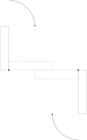 На плоскости расположены два многоугольника A и B. Многоугольник A вращается вокруг точки P, а многоугольник B — вокруг точки Q. Каждый многоугольник вращается с постоянной угловой скоростью по часовой стрелке вокруг своей точки, угловые скорости вращения многоугольников совпадают.