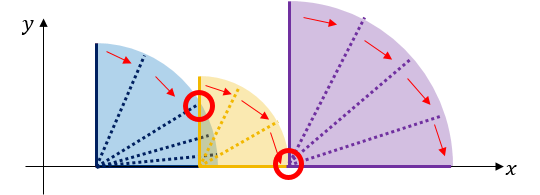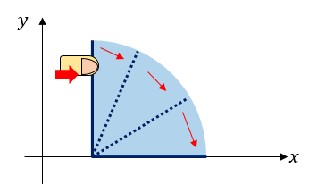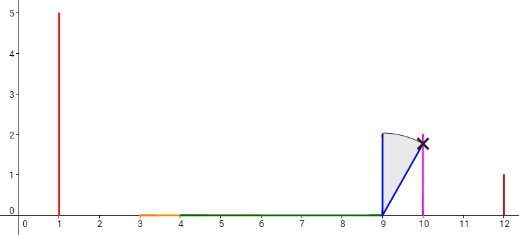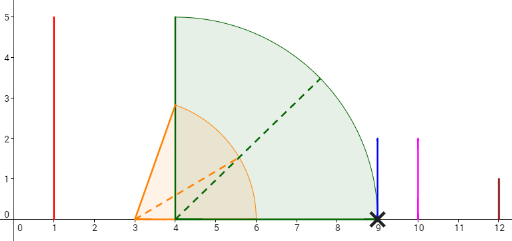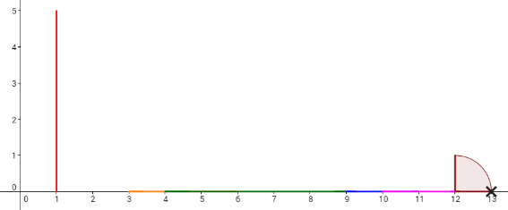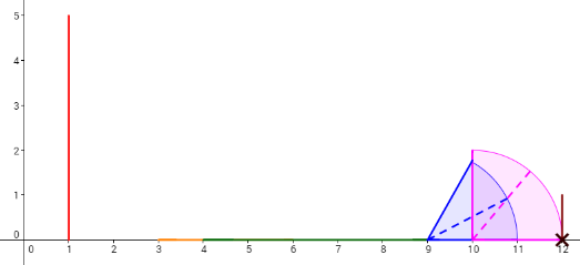 Пользователь ainta хочет снять видео с падающими доминошками. Чтобы доминошки попадали, он может толкнуть одну доминошку вправо. Тогда доминошка будет падать по круговой орбите, пока её отрезок полностью не коснётся оси x.