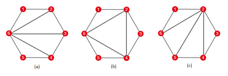 Итак, чтобы решить приведенную выше задачу, можно сперва инвертировать диагональ 6 – 3, заменив её на диагональ 2 – 4. Затем можно инвертировать диагональ 6 – 4 и получить в результате рисунок (c).