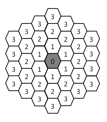 После успешно прохождения испытательного срока в компании ИТ-града, которая занимается играми, Петя вошёл в группу программистов, которая занимается созданием новой пошаговой стратегии в стиле известной «Heroes of Might & Magic». Одним из элементов игры являются пошаговые бои больших отрядов противников на бесконечных полях, где каждая ячейка представляет собой шестиугольник.
