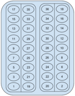 1-й ряд слева не у окна, 1-й ряд слева у окна, 1-й ряд справа не у окна, 1-й ряд справа у окна, ... , n-й ряд слева не у окна, n-й ряд слева у окна, n-й ряд справа не у окна, n-й ряд справа у окна.