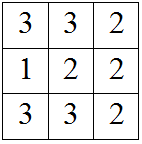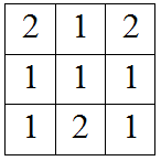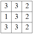 - Картина представляет собой квадрат 3 × 3, в каждой клетке которого стоит целое число от 1 до n, при этом в различных клетках могут находиться как различные, так и одинаковые числа.