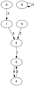 Граф задан массивом f0, f1, ..., fn - 1, где fi — номер вершины, куда ведет единственная дуга из вершины i. Кроме того задан массив весов дуг w0, w1, ..., wn - 1, где wi — вес дуги из i в fi.