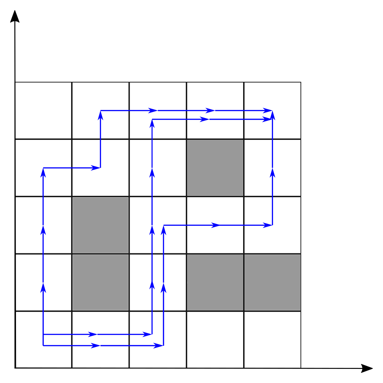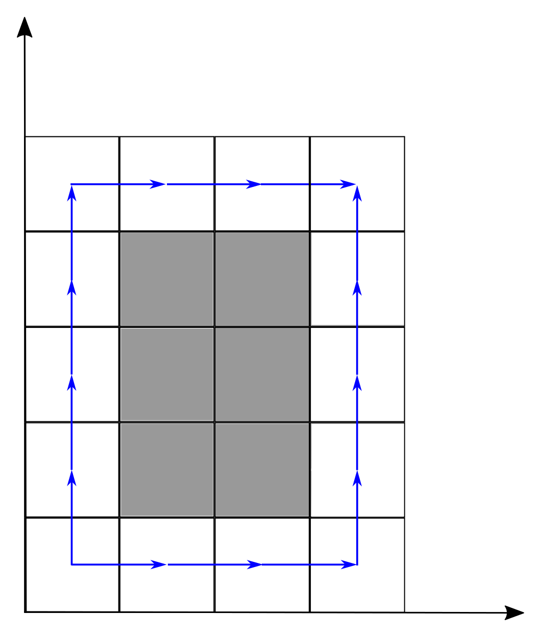Трасса схематически представляет из себя клетчатый прямоугольник n × m. На поле размещены прямоугольные препятствия, занимающие некоторые клетки. Маша должна добраться из клетки с координатами (1, 1), в клетку (n, m). При этом из каждой клетки можно перейти либо на одну клетку вверх, либо на одну клетку вправо. В клетки, в которых расположены препятствия, попадать нельзя.