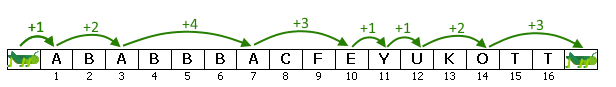 Формально, считайте, что в начальный момент кузнечик находится непосредственно перед крайним левым символом строки. Его цель — оказаться в позиции за крайним правым символом строки. За один прыжок кузнечик может прыгнуть вправо на любое расстояние от 1 до величины своей прыгучести.