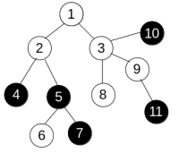 В первом примере дерево такое же, как и на рисунке в условии. Если применить к нему сначала операцию paint(3), потом операцию paint(6), то оно будет полностью покрашено в черный цвет, поэтому ответ — 2.