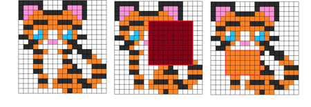 Более формально i-я особенная фотография получается из фотографии-шаблона путем замены всех символов на некотором прямоугольнике с левым верхним углом в клетке с координатами (ai, bi) и с правым нижним углом в клетке с координатами (ci, di) на символ ei.