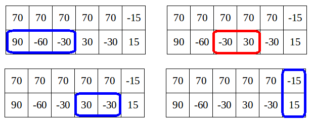 У Лимака есть таблица из 2 строк и n столбцов. Ячейка j строки i содержит целое число ti, j, которое может быть положительным, отрицательным или нулем.