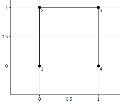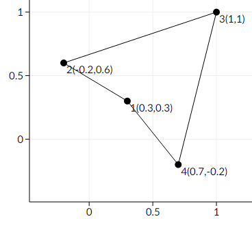 Это — не оптимальный ответ, так как максимальное расстояние, на которое мы сдвинули вершину, около ≈ 0.4242640687, в то время как можно сделать многоугольник невыпуклым, сдвинув каждую точку на расстояние не более ≈ 0.3535533906.