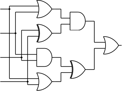 Входные данные состоят из четырех строк, каждая из которых содержит одну цифру - 0 или 1.