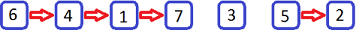 На рисунке изображены три списка. Например, для рисунка выше значения l и r следующие: l1 = 4, r1 = 7; l2 = 5, r2 = 0; l3 = 0, r3 = 0; l4 = 6, r4 = 1; l5 = 0, r5 = 2; l6 = 0, r6 = 4; l7 = 1, r7 = 0.