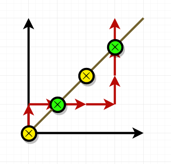Мир может быть представлен как первый квадрант на плоскости, тогда стена построена на прямой x = y. Все точки ниже стены принадлежат одному королевству, все точки выше стены принадлежат другому королевству. В каждой точке стены с целочисленными координатами (т. е. в точках (0, 0), (1, 1), (2, 2), ...) есть ворота. Стена и ворота не принадлежат ни одному королевству.