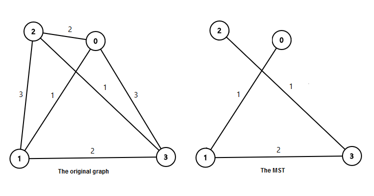 В первом примере: Вес минимального остовного дерева равен 1+2+1=4.