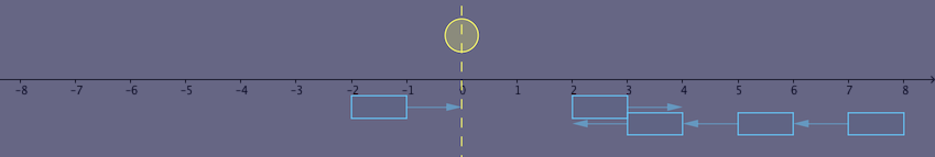 На рисунке ниже приведены положения облаков в момент времени \(2.5\) при скорости ветра \(w = -0.4\). В этот момент \(1\)-е и \(3\)-е облака оба закрывают луну.