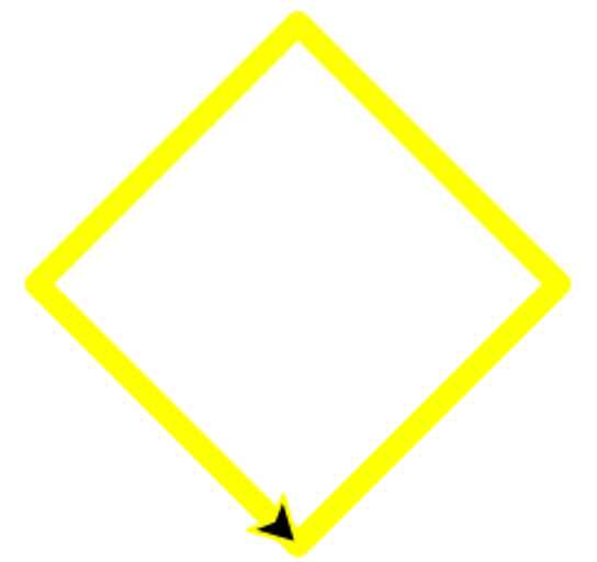 Нарисуйте желтый ромб со стороной 75. Толщина 5