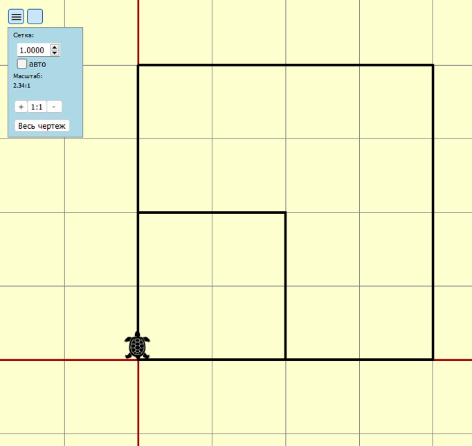 Напишите программу для Черепахи рисования двух вложенных квадратов со стороной 2 и 4 клетки.