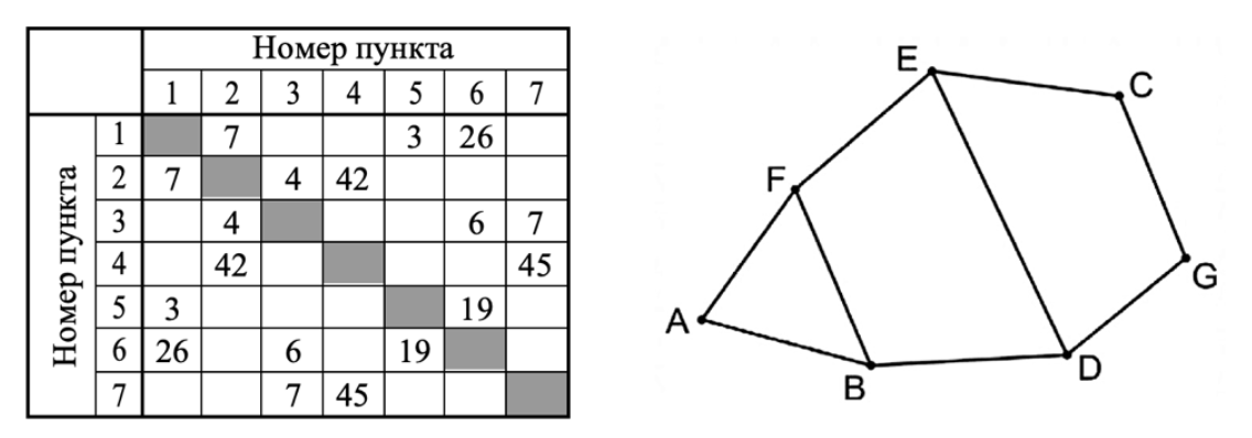 Так как таблицу и схему рисовали независимо друг от друга, то нумерация населённых пунктов в таблице никак не связана с буквенными обозначениями на графе.